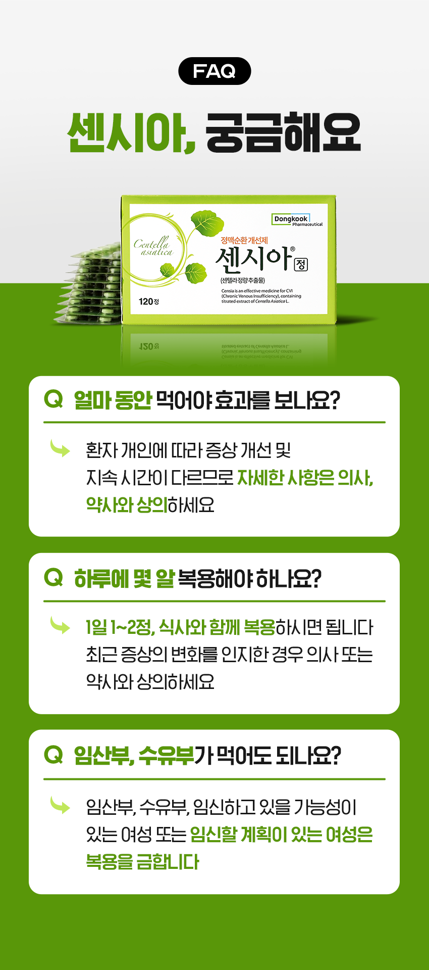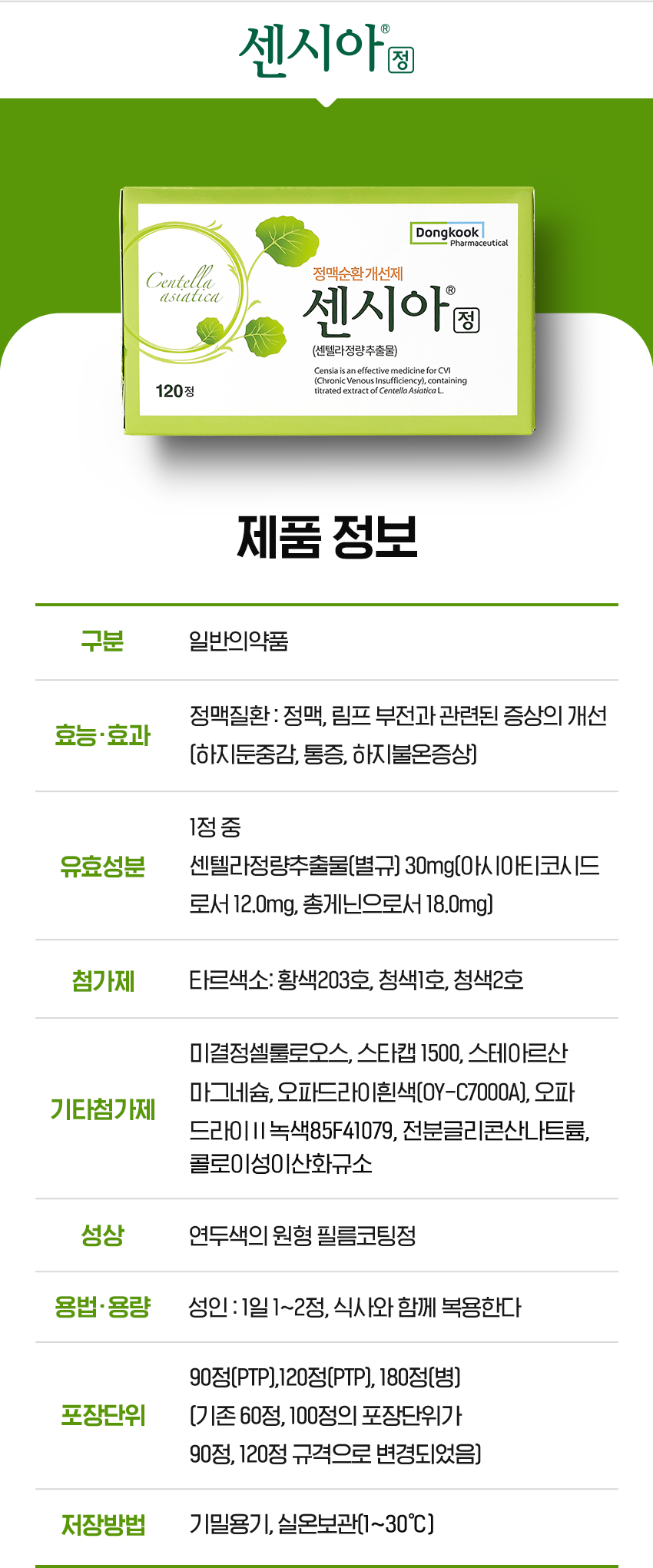 정맥질환 : 정맥, 림프 부전과 관련된 증상의 개선 (하지둔중감, 통증, 하지불온증상) |