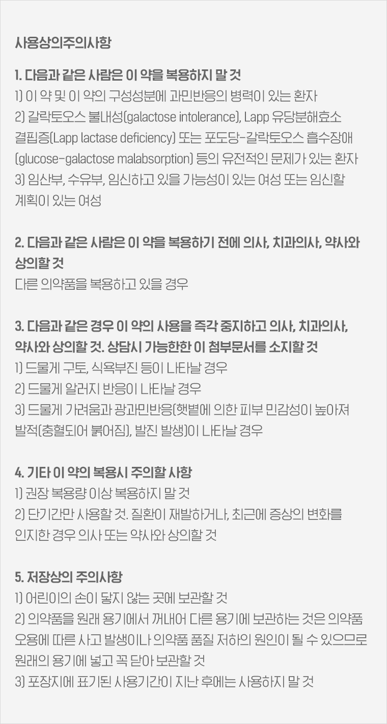 2) 단기간만 사용할 것. 질환이 재발하거나, 최근에 증상의 변화를 인지한 경우 의사 또는 약사와 상의할 것.